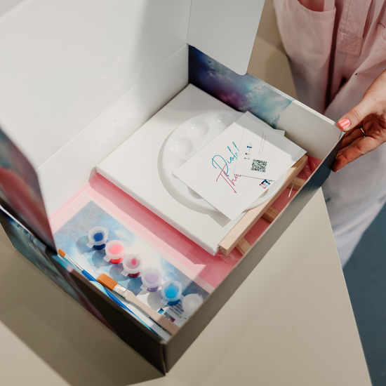 I offer Art boxes ('Bocsys Celf') which include painting materials, a mini print and a QR code which takes you to a video tutorial of how to paint a mountain landsape. Perfect for all abilities and if you'd like to experiment at home.